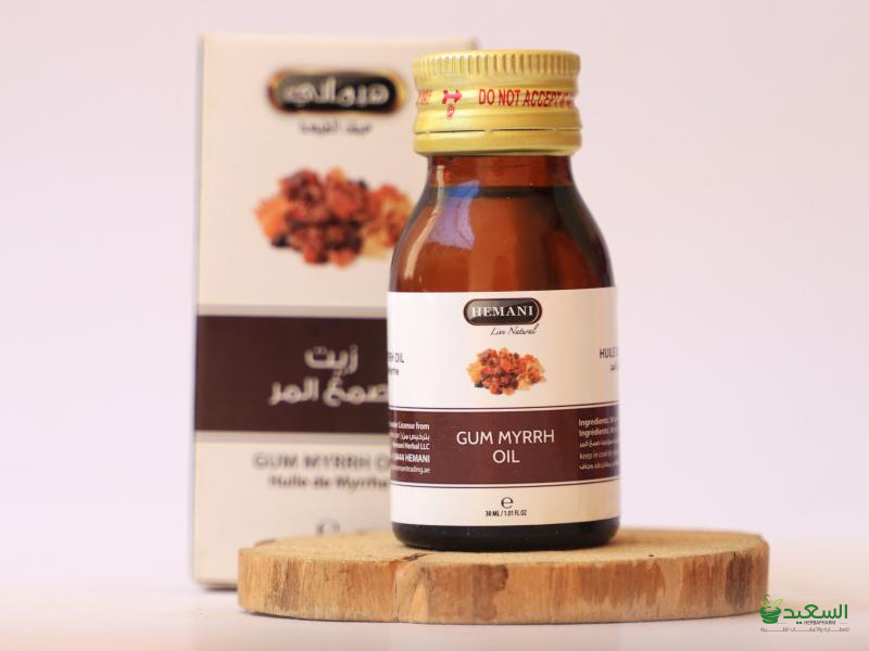 زيت الصمغ المر زيت غني بمركبات طبيعية مضادة للأكسدة والالتهابات، يُستخدم موضعيًا بعد التخفيف بزيت ناقل للعناية بالبشرة وتهدئة الالتهابات الجلدية البسيطة، كما يمكن استخدامه في العلاج بالروائح لتعزيز الاسترخاء النفسي والشعور بالهدوء. يُستخدم خارجيًا فقط.